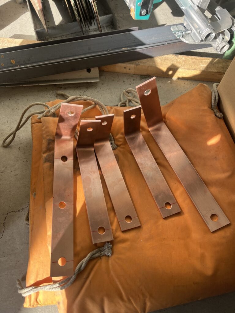 今回はアレスタに使用する銅バーの加工をおこないました。基本的に銅バーの加工は曲げたり、穴をあけたり、切ったりするのをメインで行いました。曲げるときには、どのくらい曲げるかは自分の目で判断するので、ゆっくり慎重に曲げていくようにしたいです。